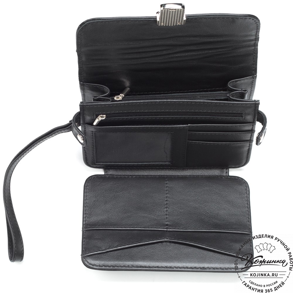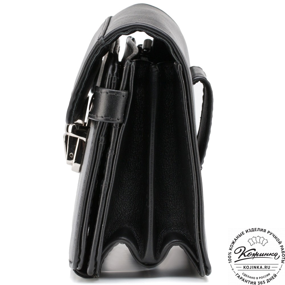Кожаная барсетка "Гевара" (черная) - маленькая, но вместительная барсетка, которую можно носить не только в руках, но и на ремне, как поясную сумку!