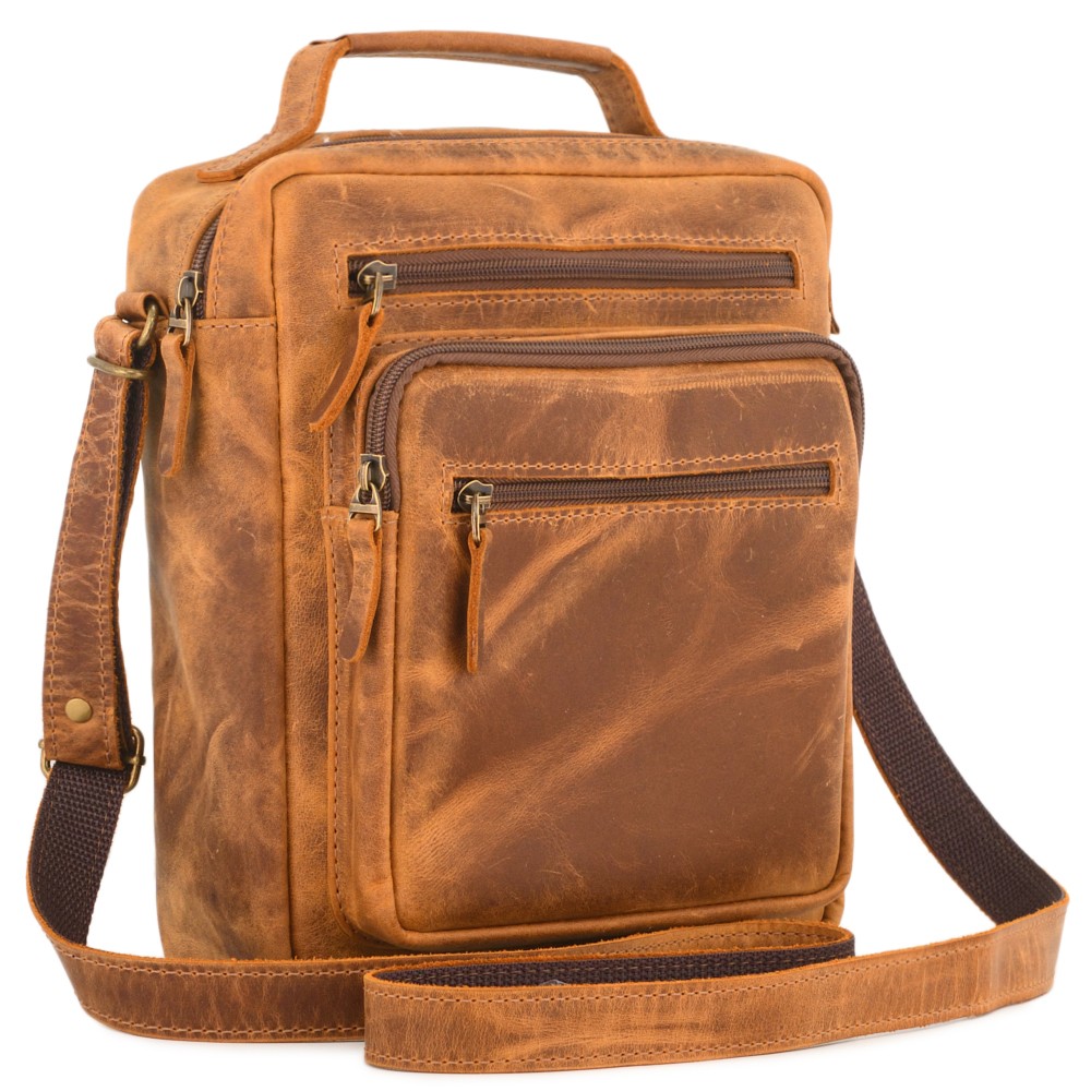 Кожаная сумка "Гектор" – небольшая, но вместительная мужская сумка. Практичная повседневная модель с удобными карманами внутри и снаружи.
