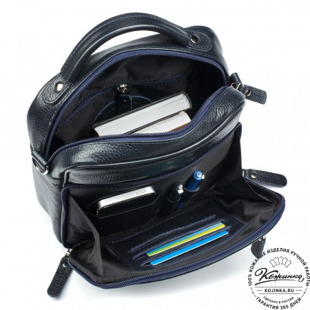 Основное отделение закрывается на молнию. Внутри два кармана на молнии, подкладка выполнена из прочной ткани.