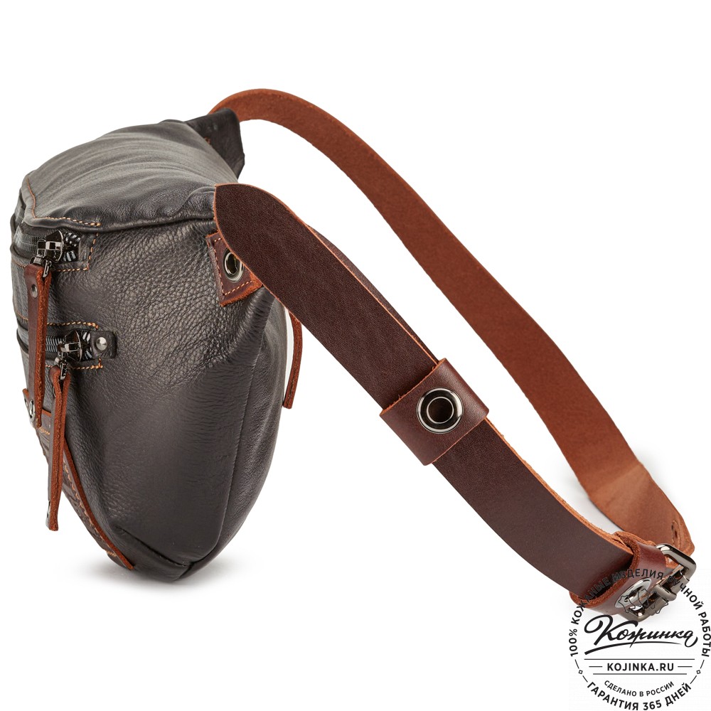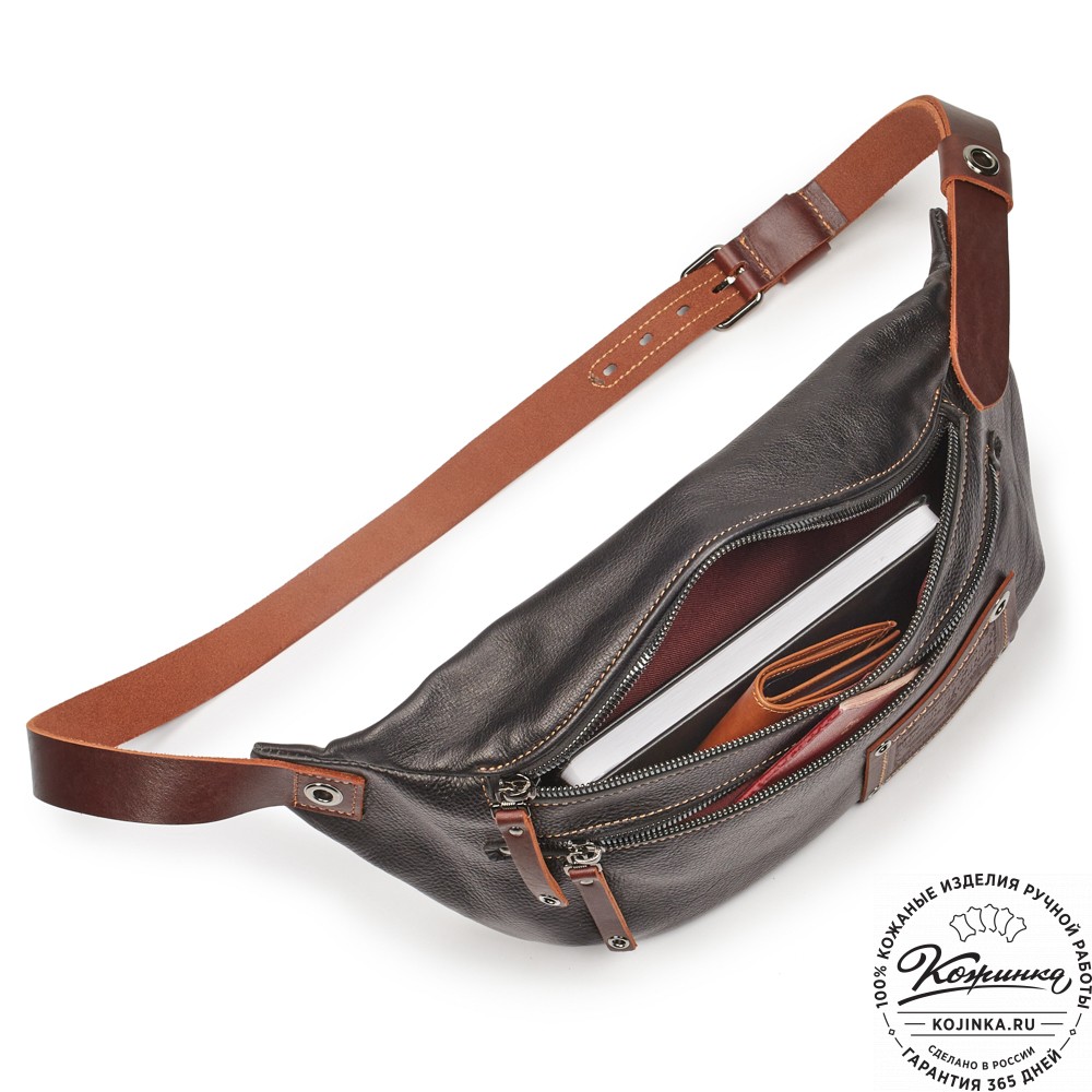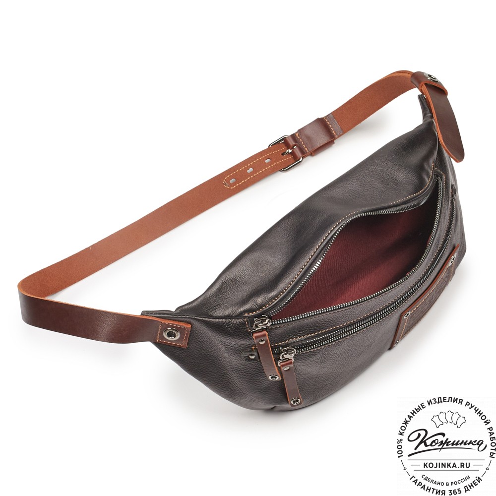 Кожаная нагрудная сумка "Мельбурн" – удобный и стильный аксессуар, который можно носить и как нагрудную сумку, и как сумку на пояс.
