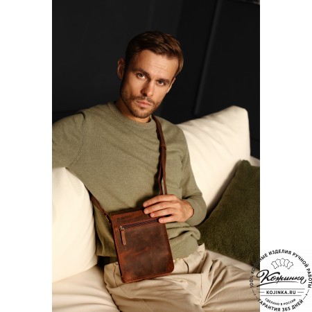 Кожаная сумка "Тимати" (коричневая) - интересная, нестандартная, современная модель для тех, кому важен образ в деталях!