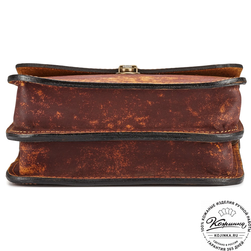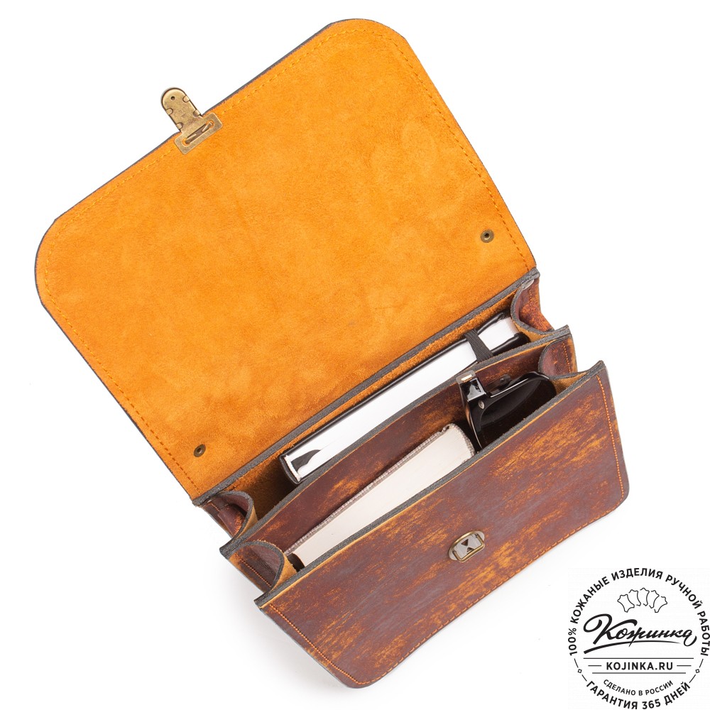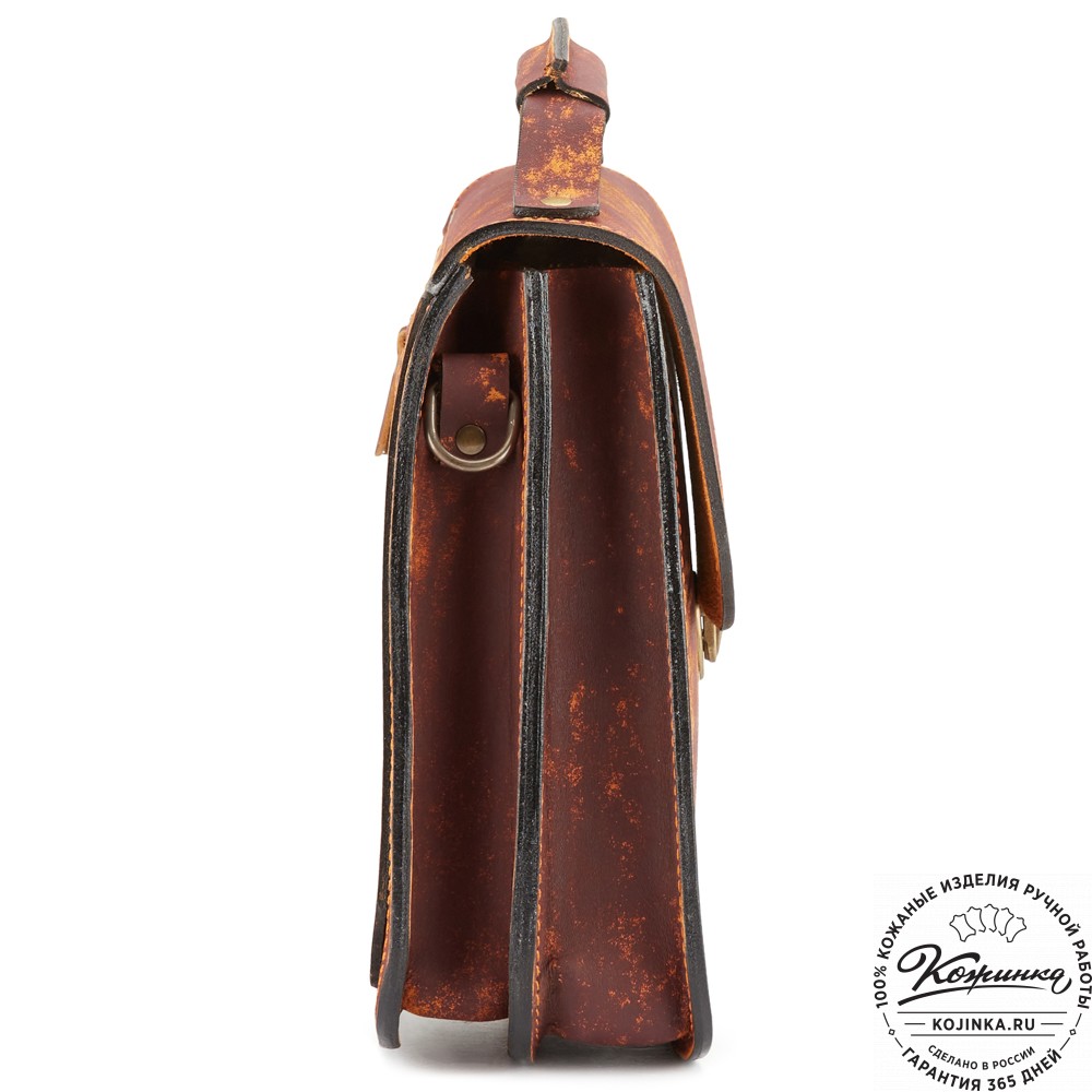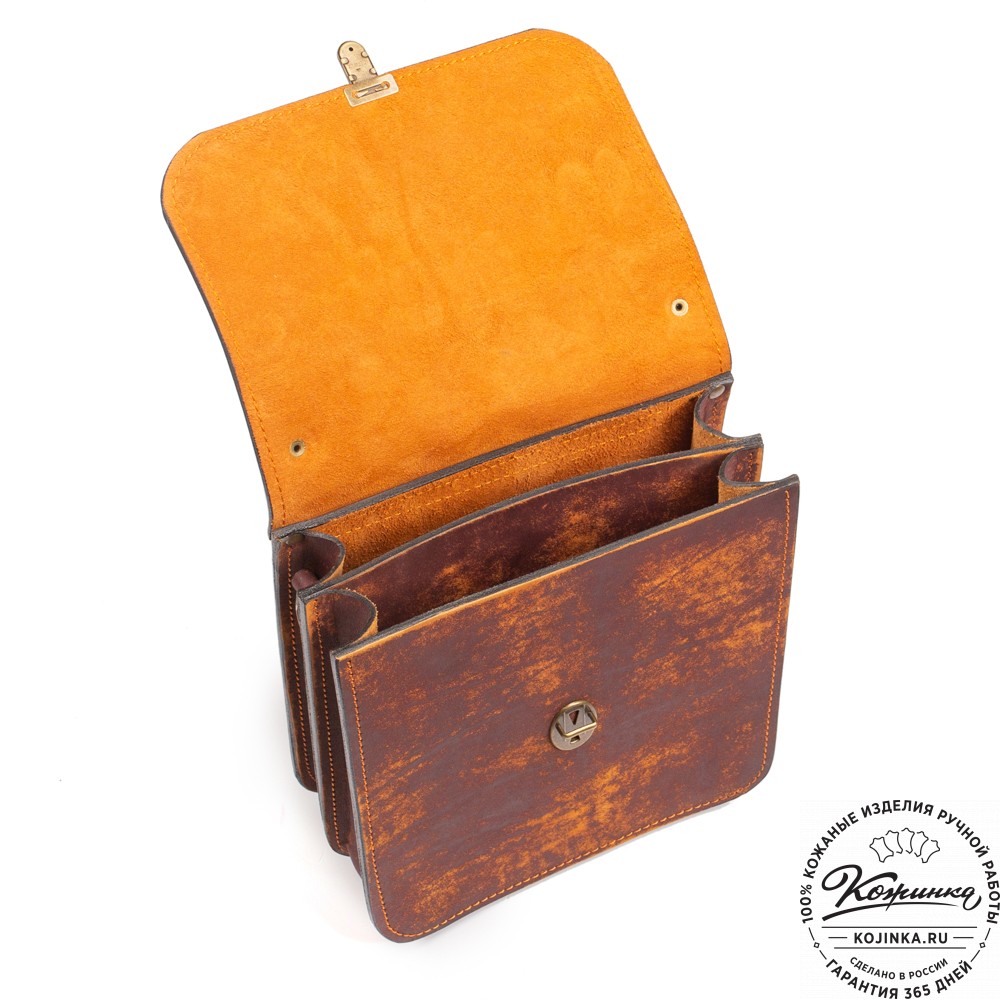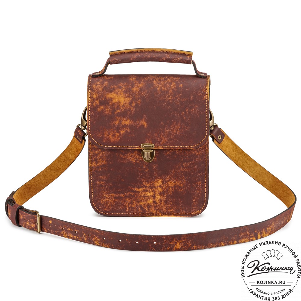 Плечевой ремень выполнен из кожи. Ремень съемный, крепится на карабины, регулируется по длине ременной пряжкой.