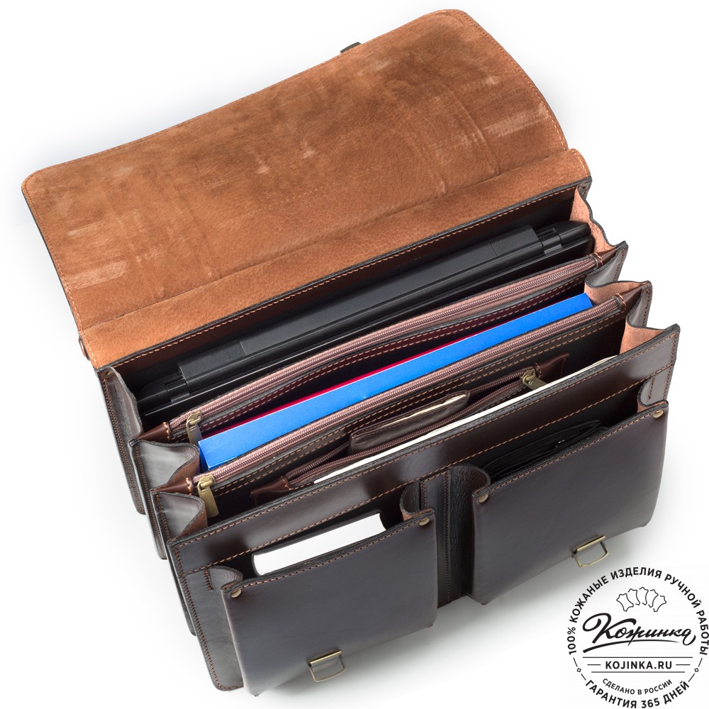 Портфель изготовлен из высококачественной натуральной кожи и прочной фурнитуры. Различные расцветки позволяют подобрать портфель на свой вкус.