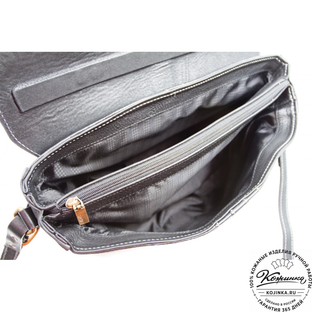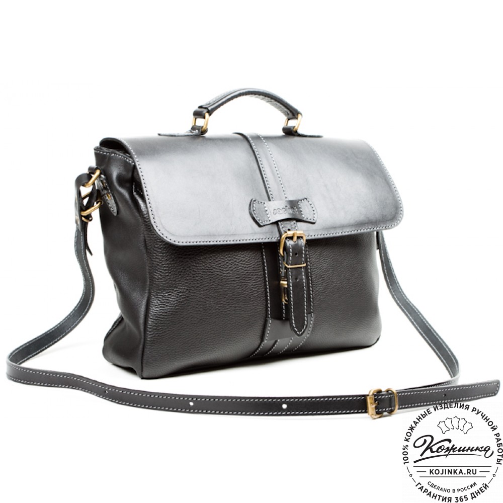 Портфель из 100% натуральной толстой кожи, закрывается на одну пряжку с регулируемой длиной. Сверху конструкция укреплена жёсткой толстой кожей. Внутри два удобных отдела разделённых перегородкой с карманом на молнии. В переднем отделении есть дополнительный малый карман на молнии. На задней стенке имеется один накладной кожаный карман и второй карман на молнии - для быстрого доступа.