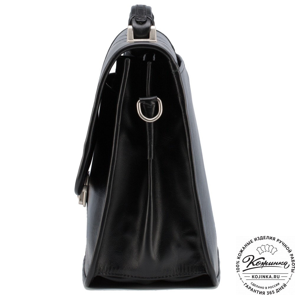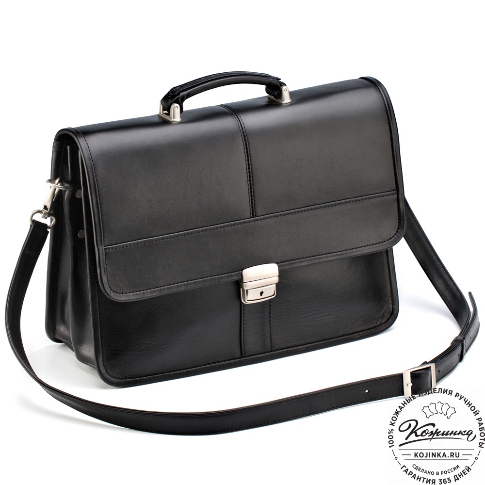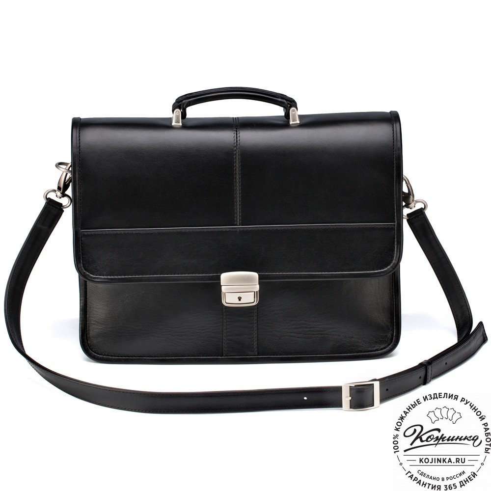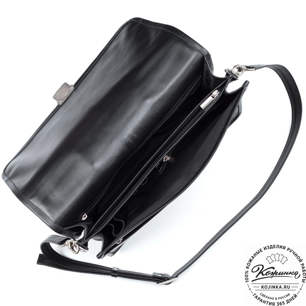 Кожаный портфель "Вильгельм" (чёрный) – классический мужской портфель из натуральной кожи. Строгая и солидная модель с хорошо продуманной внутренней организацией.