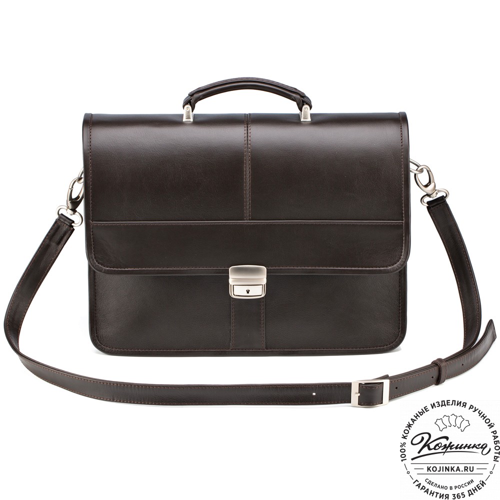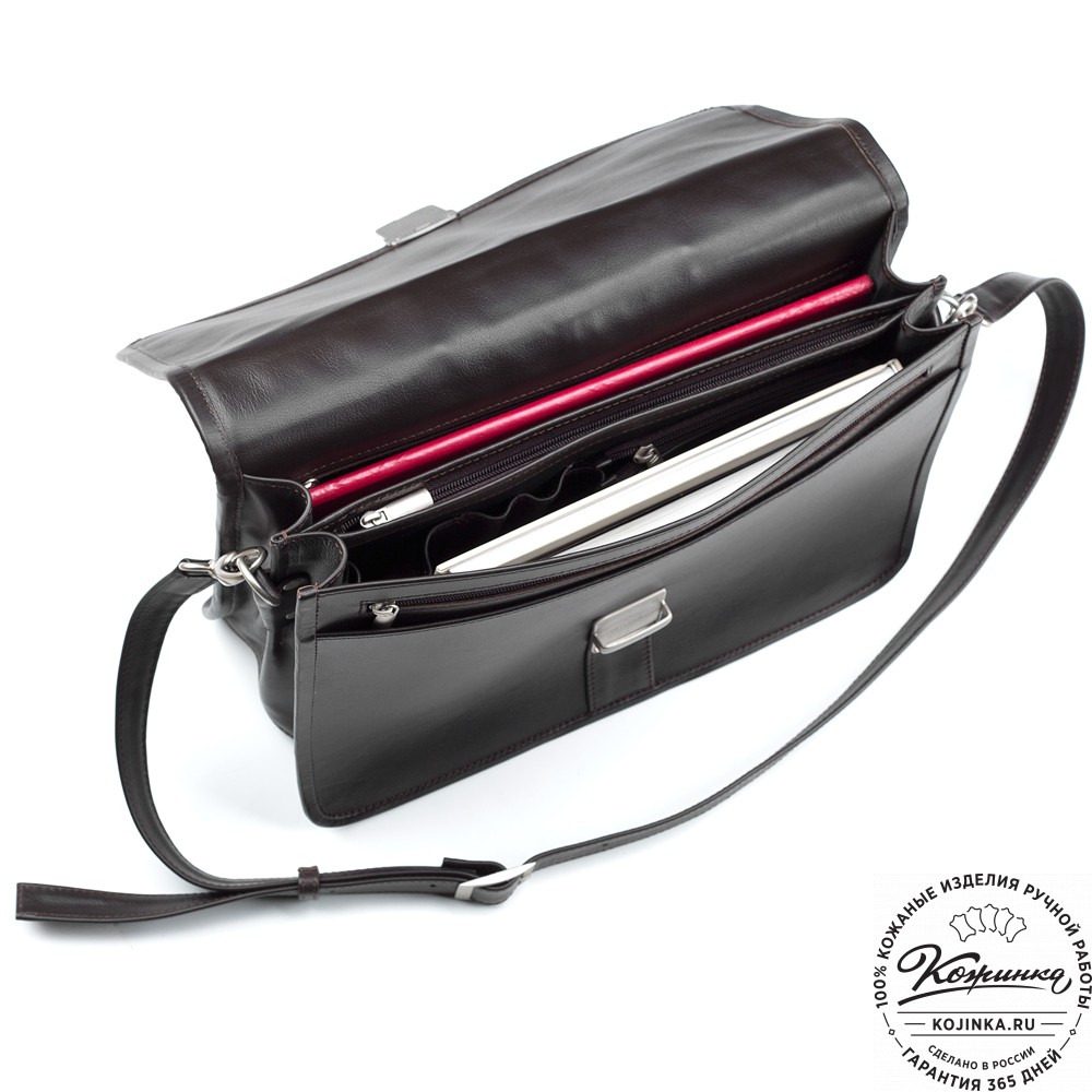 Портфель изготовлен из высококачественной натуральной кожи и прочной фурнитуры.