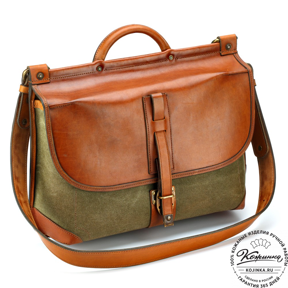 Портфель из кожи и брезента "Крокер" – эксклюзивная модель из лимитированной коллекции портфелей ручной работы. В каждой детали этого портфеля уникальный стиль и мастерство автора!
