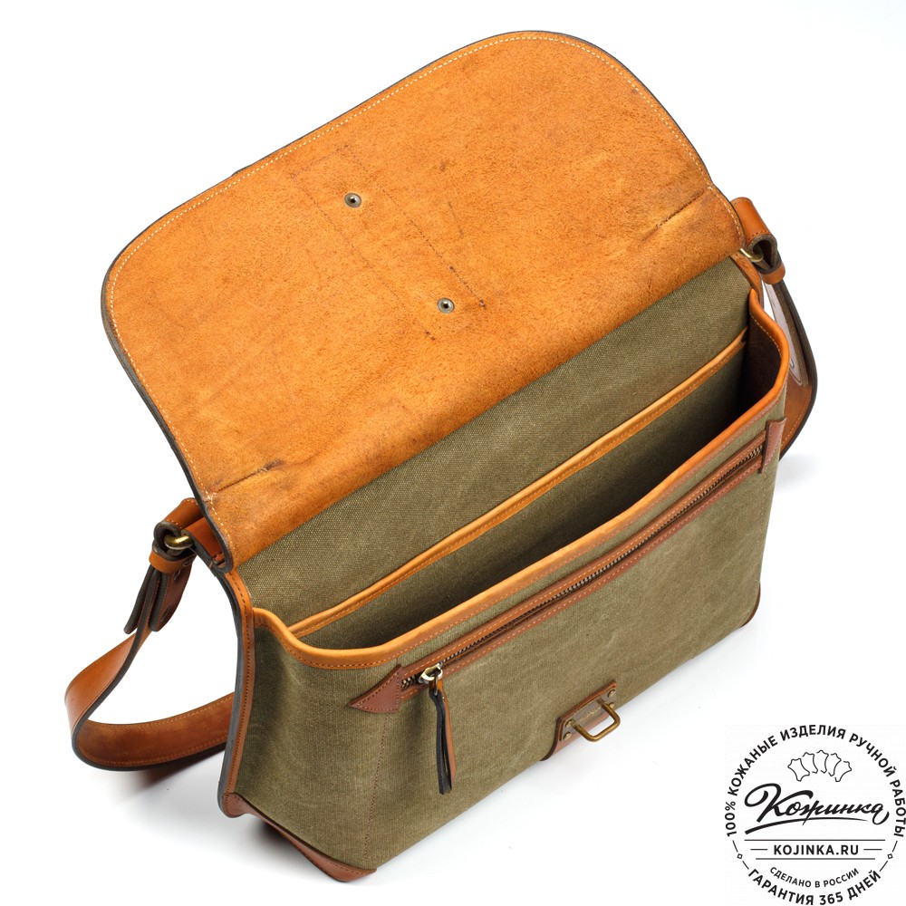 Портфель изготовлен из высококачественной жесткой шорно-седельной кожи и прочного брезента. Держит форму, отличается прочностью и износостойкостью.