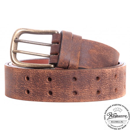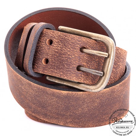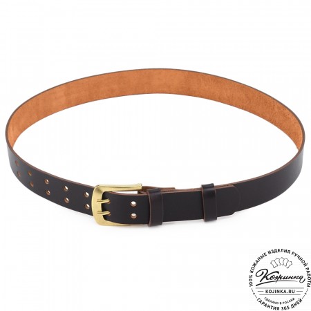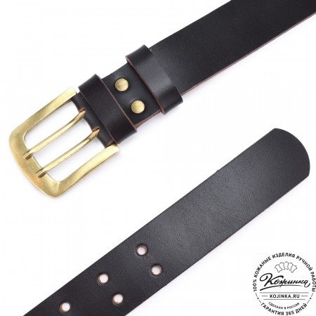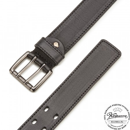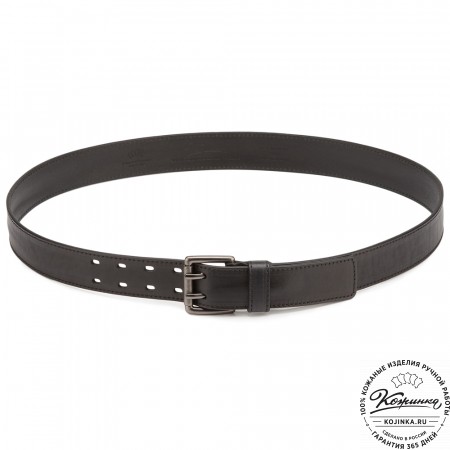 Кожаный ремень "Гигант" (черный) - изготовлен из прочной натуральной кожи.