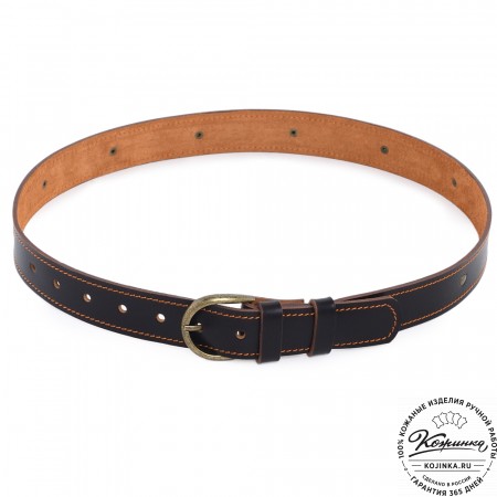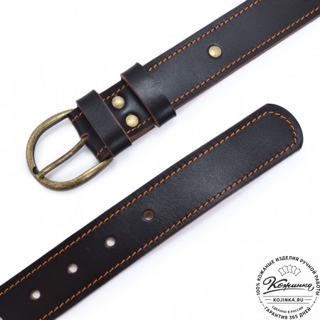 Кожаный мужской ремень "Адам" (коричневый) - ремень из толстой шорно-седельной кожи с классической пряжкой на 2 отверстия.