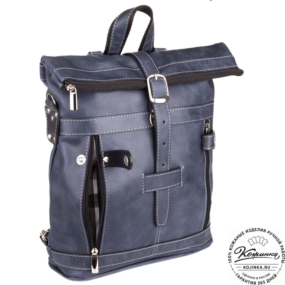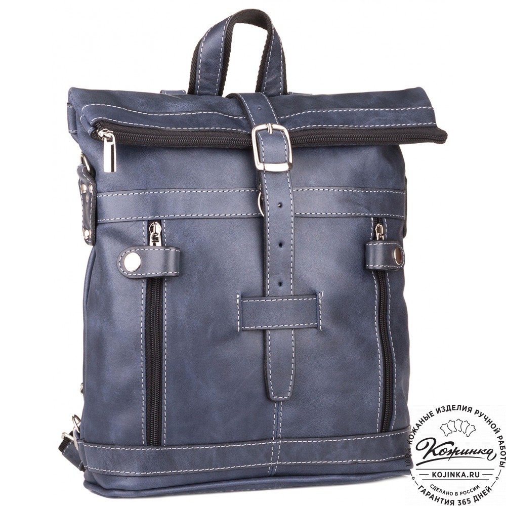Кожаная сумка-рюкзак «Бора-бора» (темно-синий) – стильный и элегантный рюкзак из мягкой гладкой кожи темно-синего цвета.