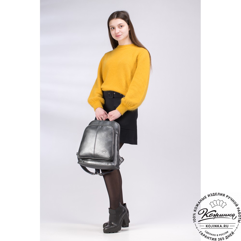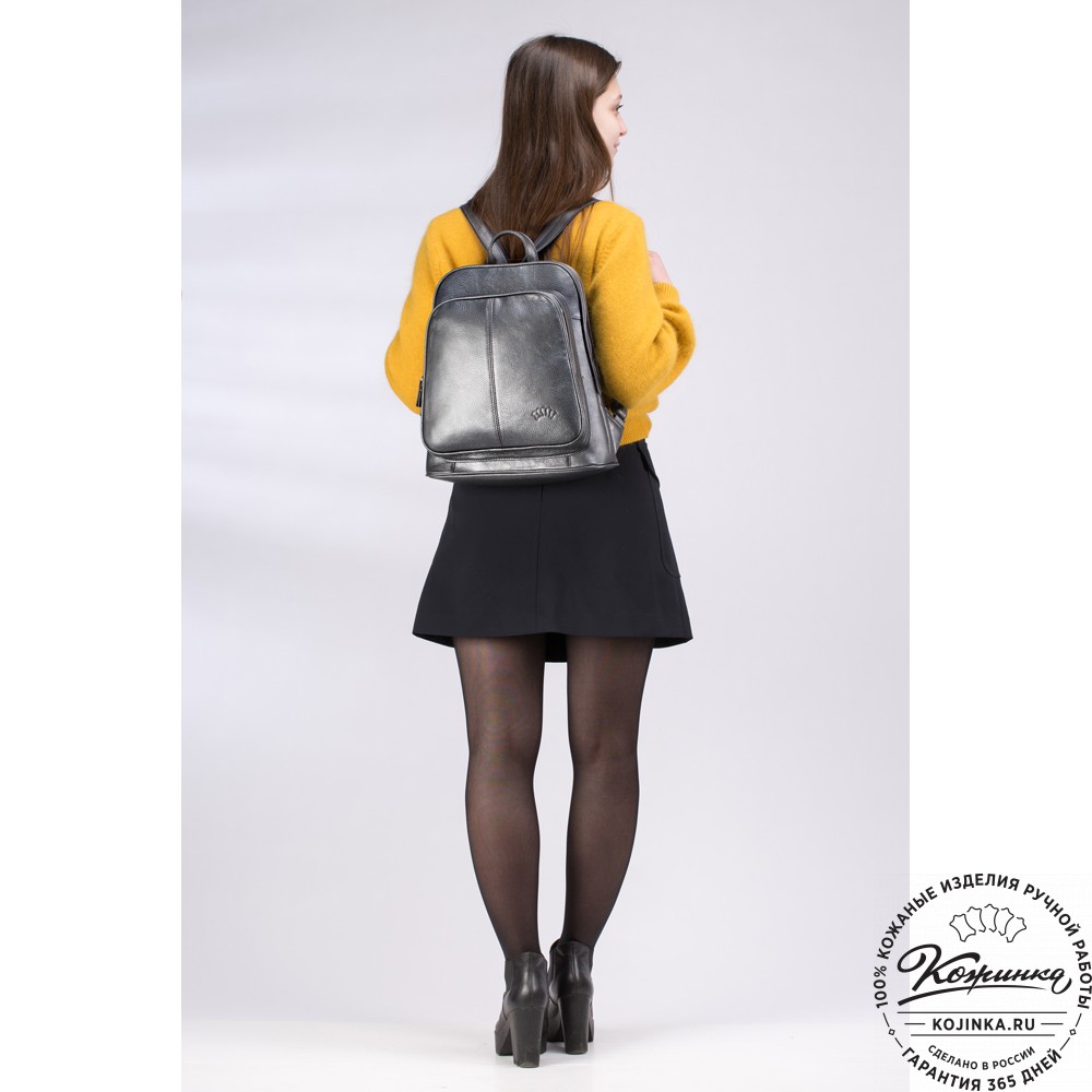 На модели представлен рюкзак "Бетси" серебристого цвета.