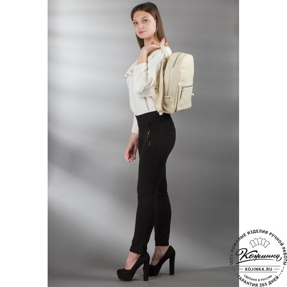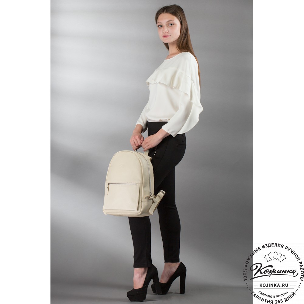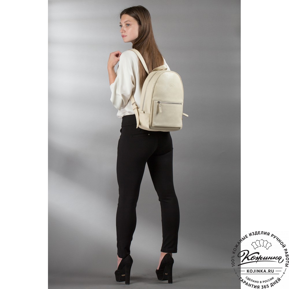 Кожаный рюкзак "Джессика" (бежевый) – удобный повседневный рюкзак с приятным лаконичным дизайном.