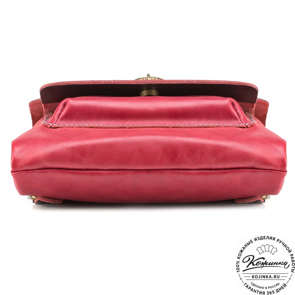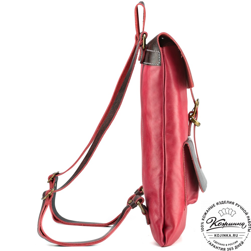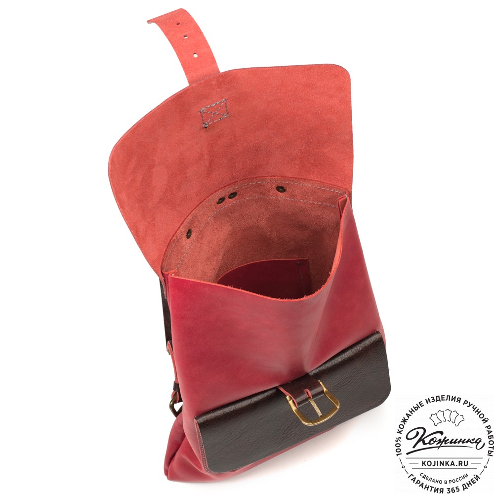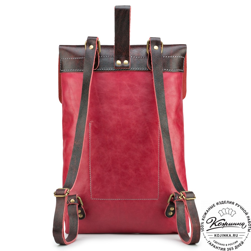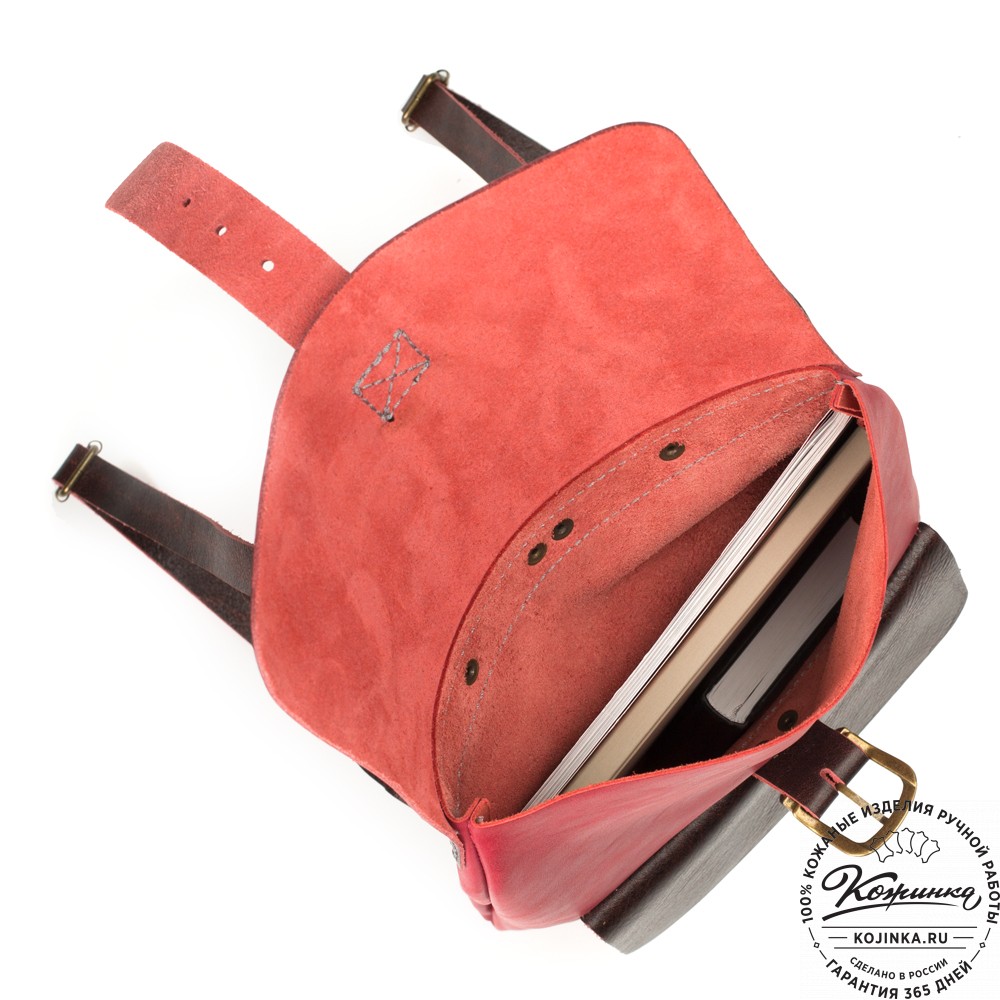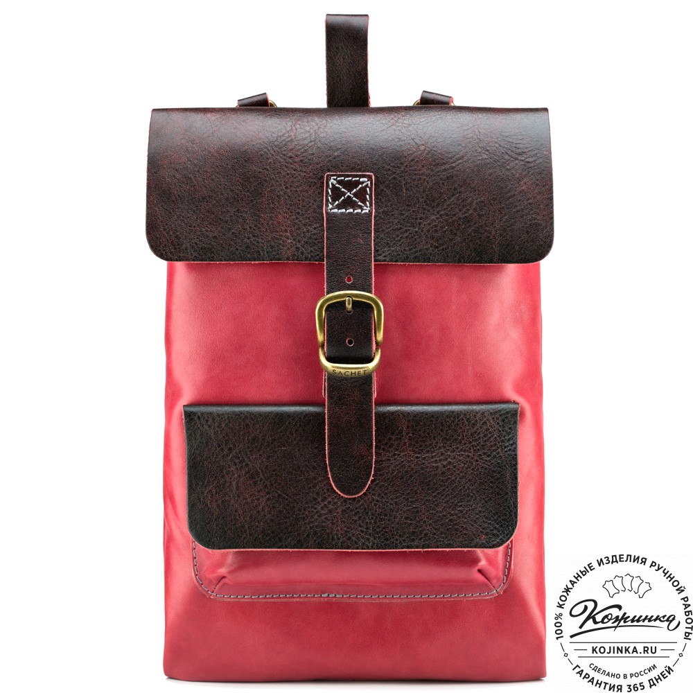 Сочетание кожи красного цвета с гладкой коричневой кожей на клапане, кармане и лямках рюкзака - именно это делает Грэй таким интересным!