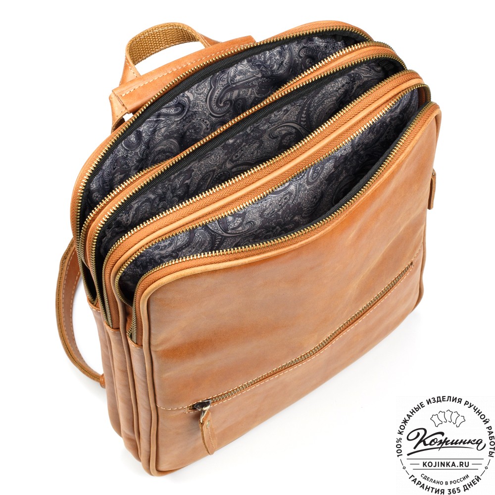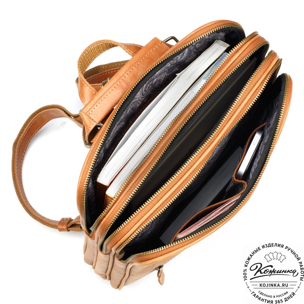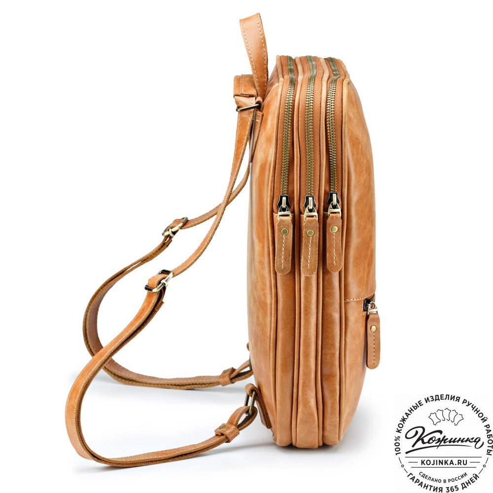 Рюкзак-сумка изготовлен из прочной натуральной кожи высокого качества.