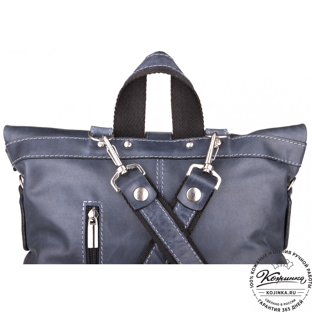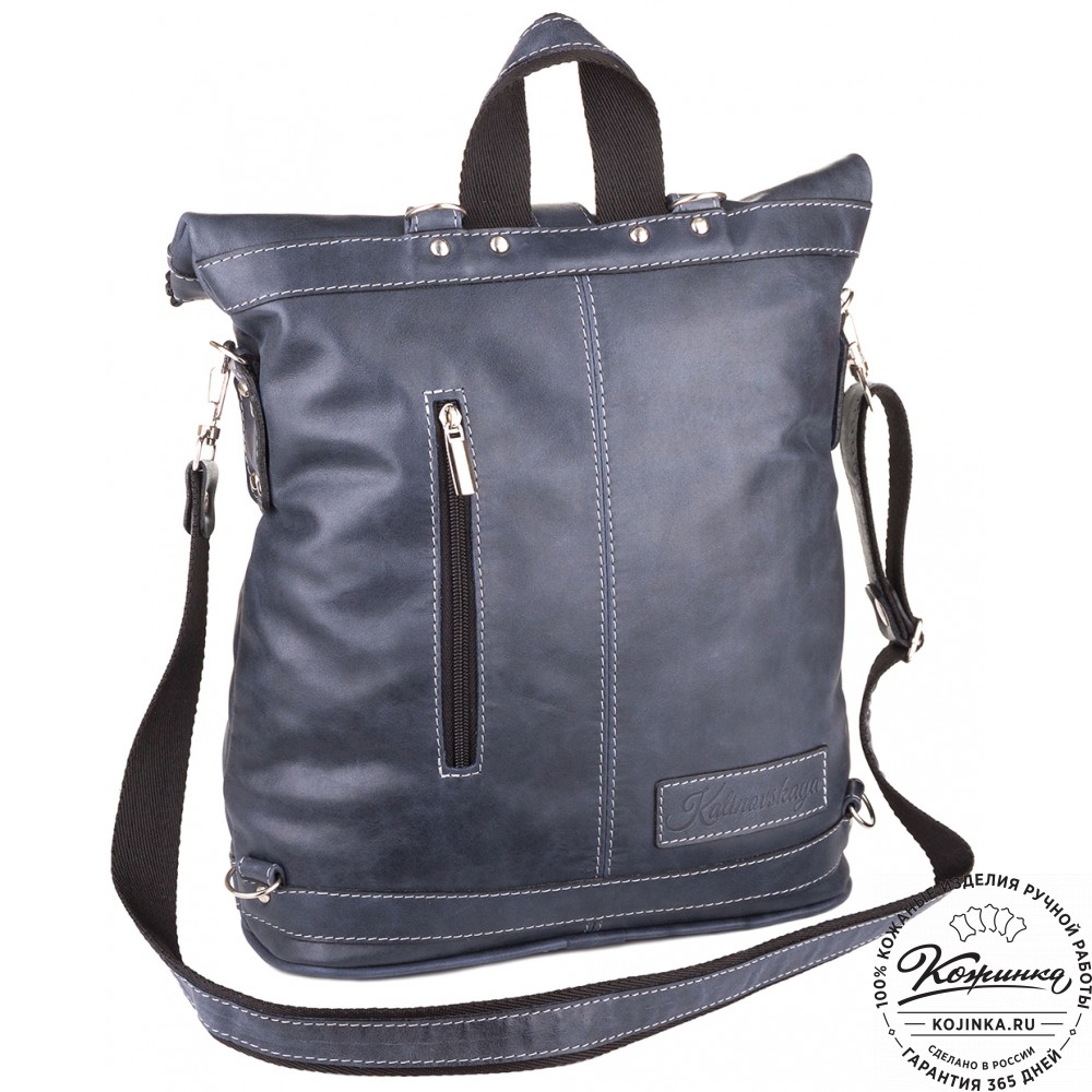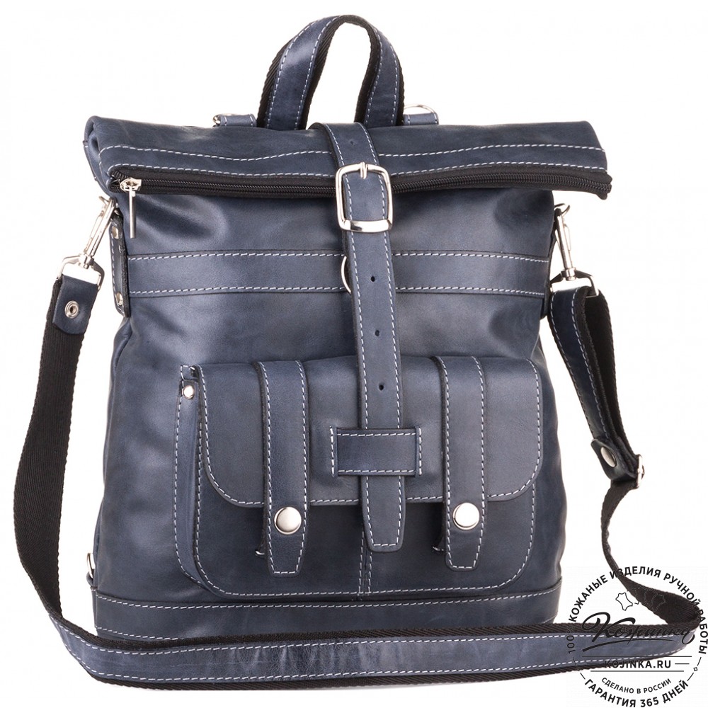 Кожаная сумка-рюкзак "Сан-Тропе" (тёмно-синий) - яркий, стильный и функциональный рюкзак тёмно-синего цвета, выполнен из мягкой кожи европейского качества.