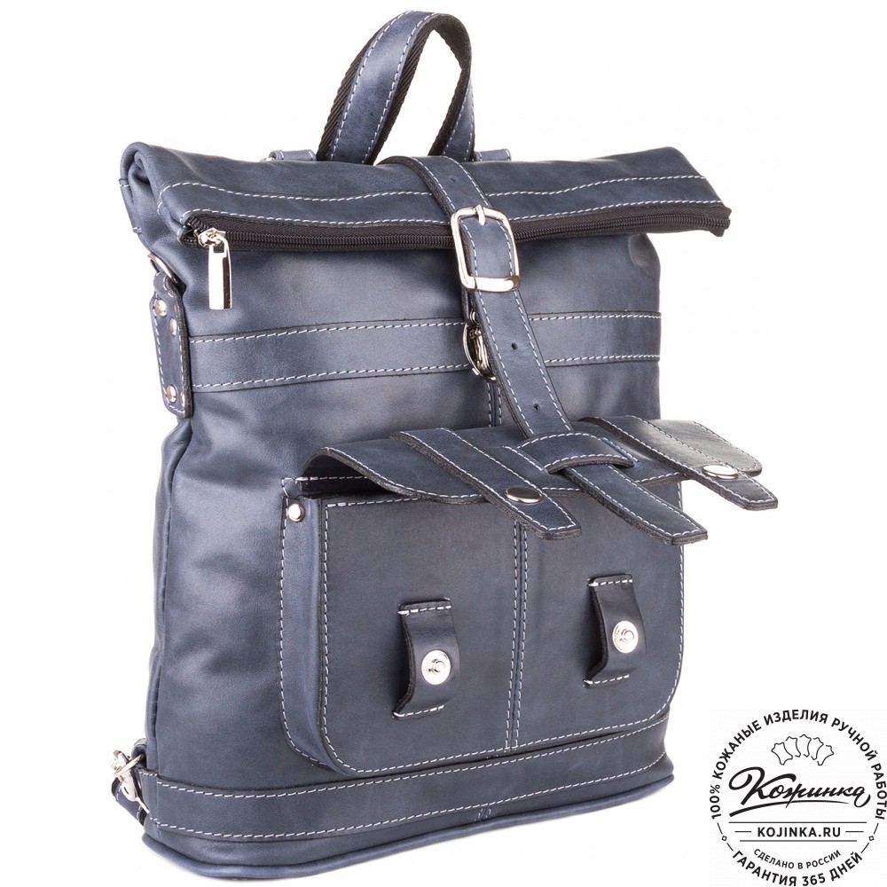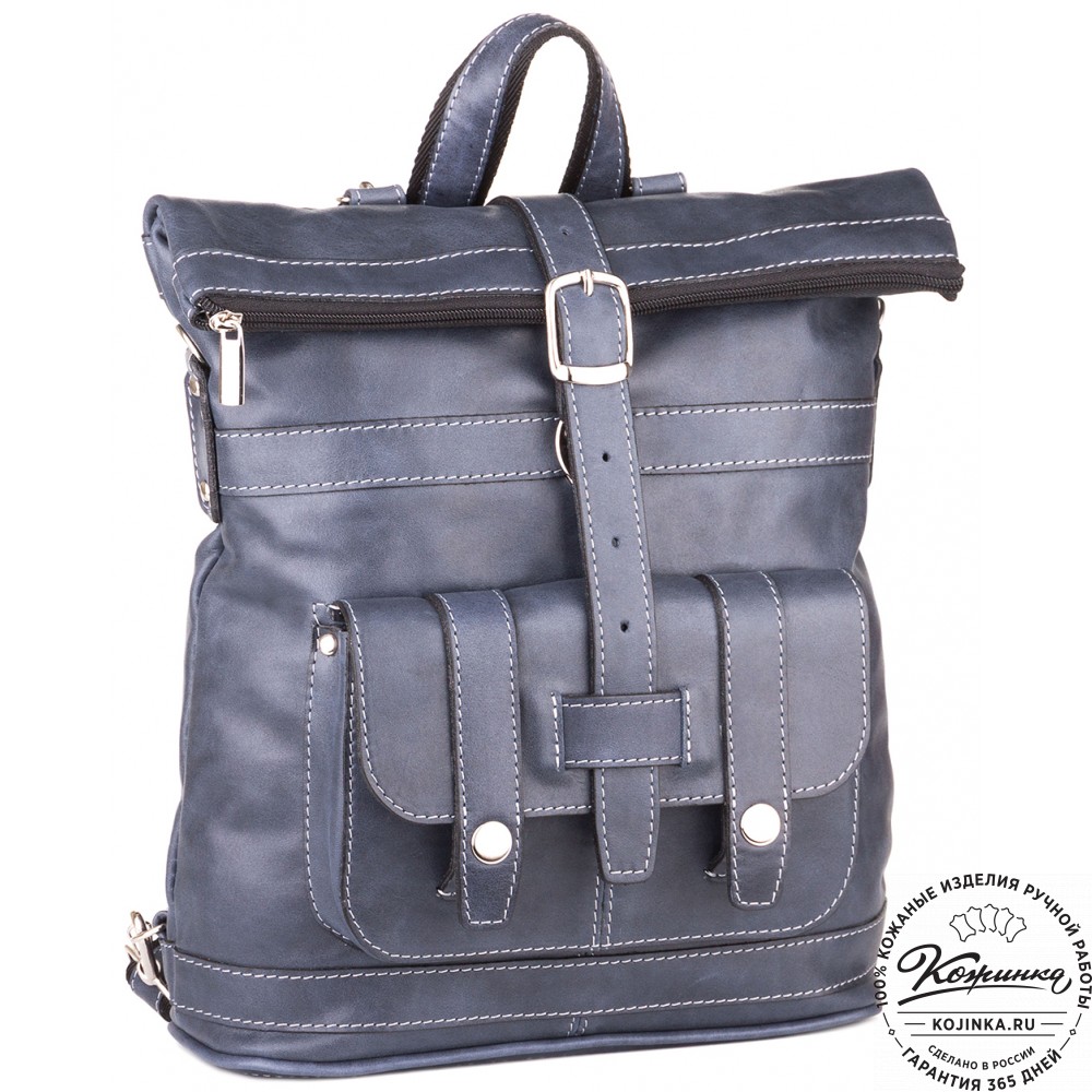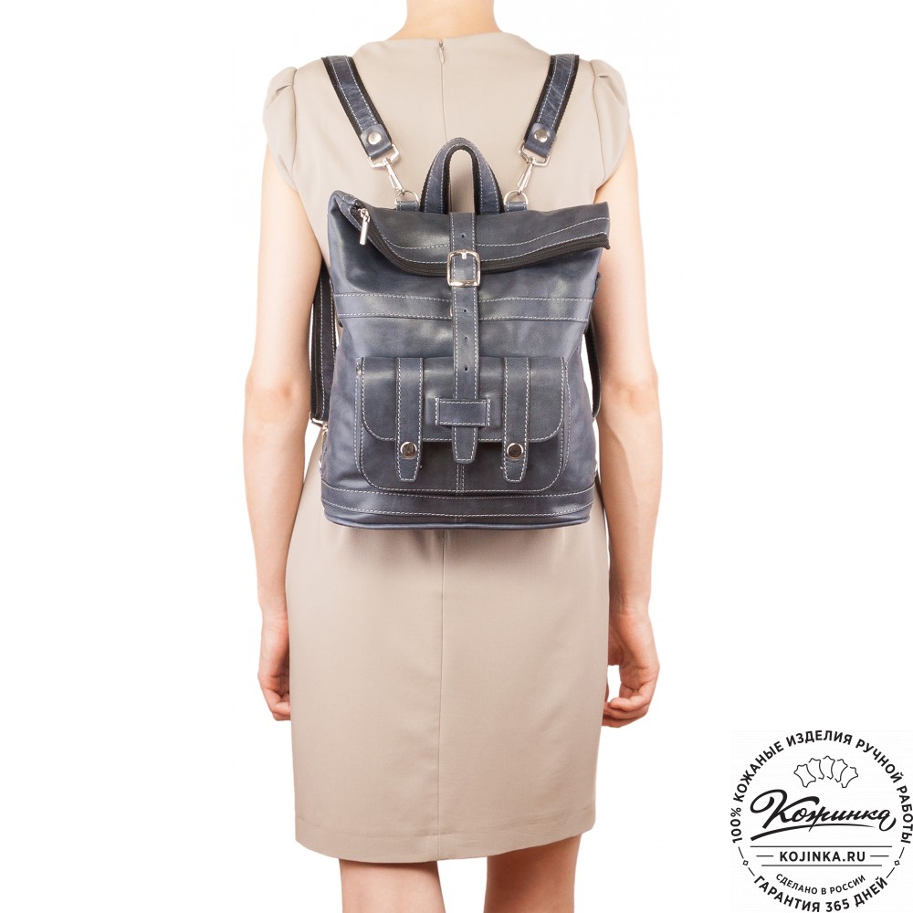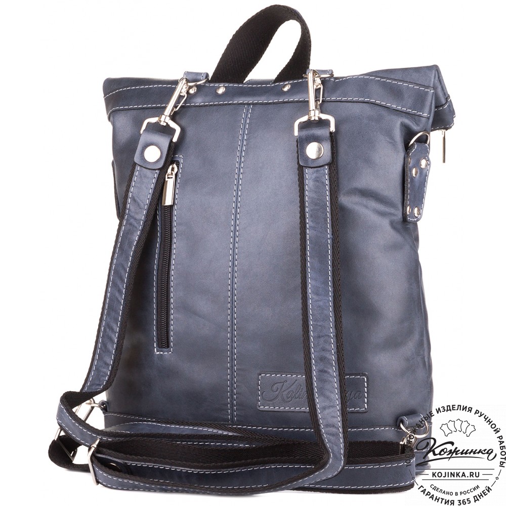 Кожаная сумка-рюкзак "Сан-Тропе" (тёмно-синий) - яркий, стильный и функциональный рюкзак тёмно-синего цвета, выполнен из мягкой кожи европейского качества.
