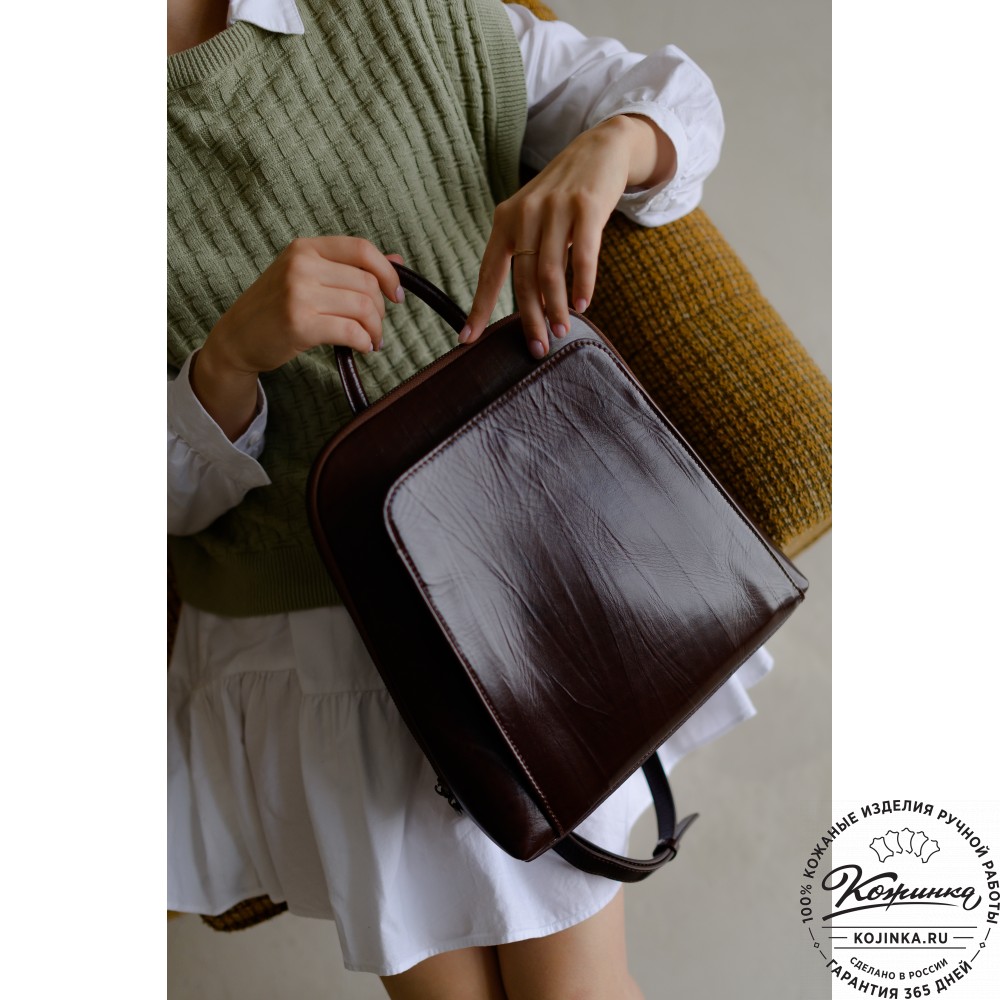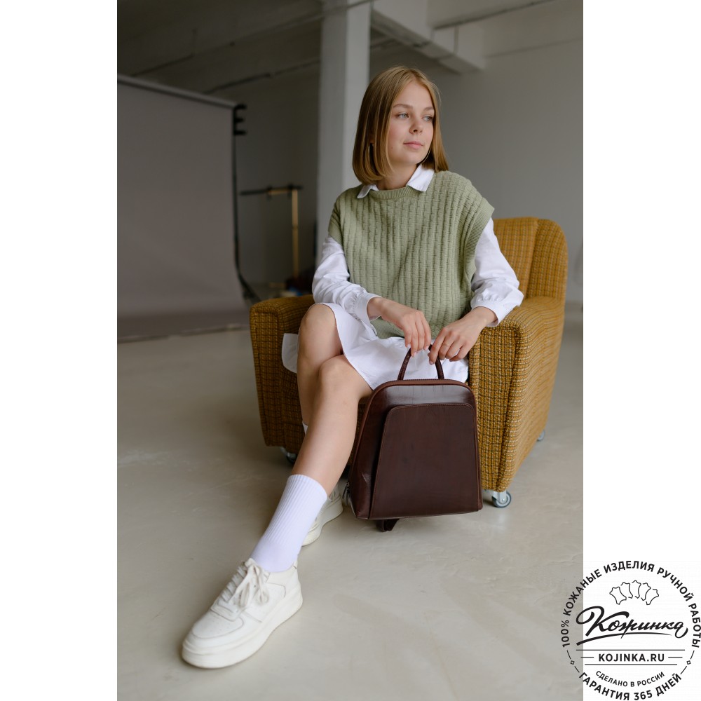 Женский кожаный рюкзак "Джорджия" (коричневый) – небольшой стильный рюкзак из натуральной кожи.