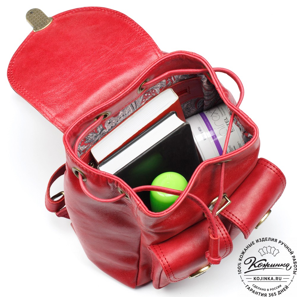Женский кожаный рюкзак "Нэнси" (красный) - маленький, стильный, женственный рюкзак, созданный для тех, кто любит легкость и красоту.