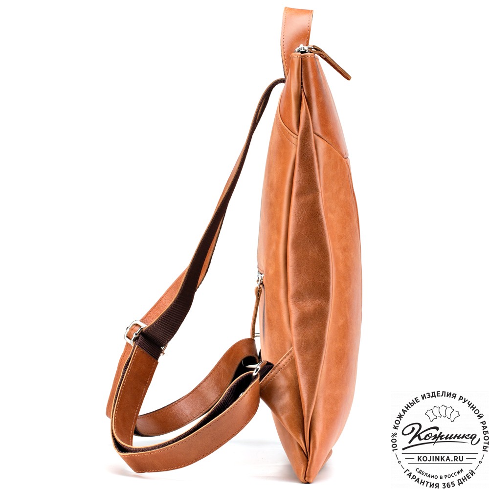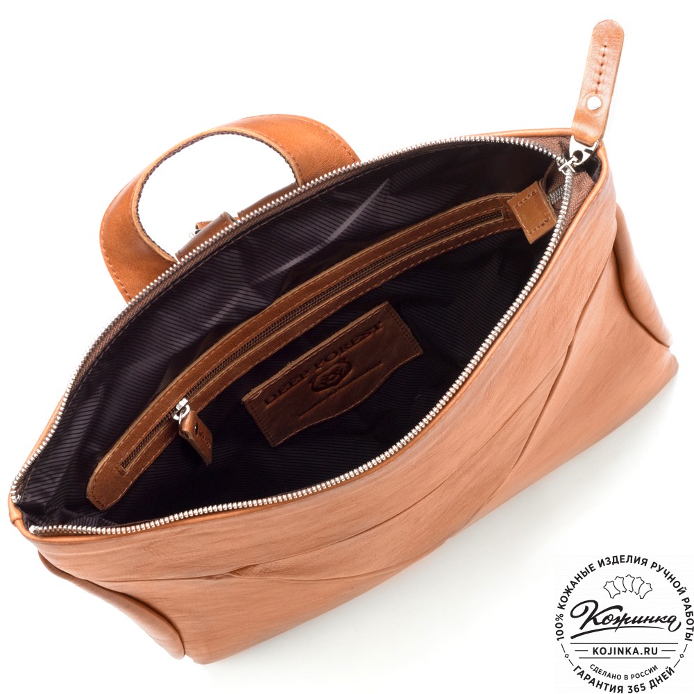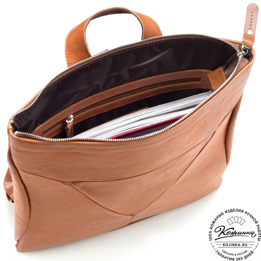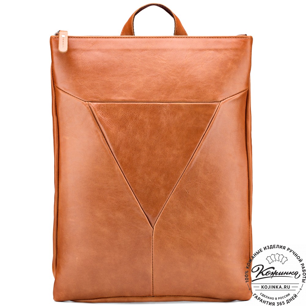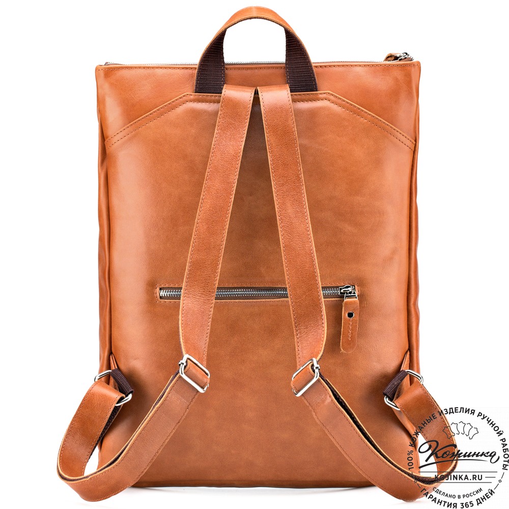 Кожаный рюкзак "Ария" (рыжий) - стильный городской рюкзак с оригинальным дизайном и застежкой на молнии.