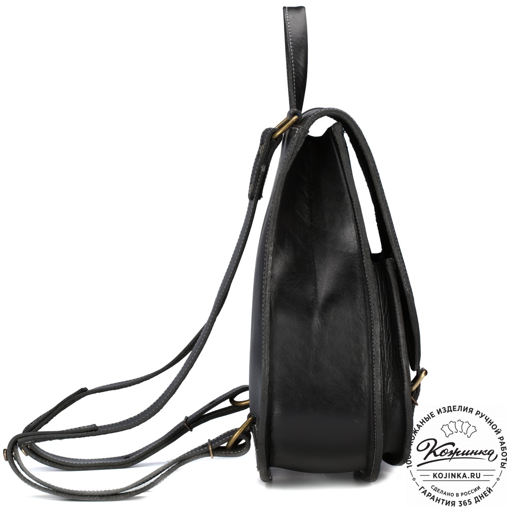 В этой модели плавные округлые линии удивительно гармонично сочетаются с толстой прочной кожей. Несмотря на размеры, рюкзак выглядит компактно, аккуратно и хорошо держит форму.