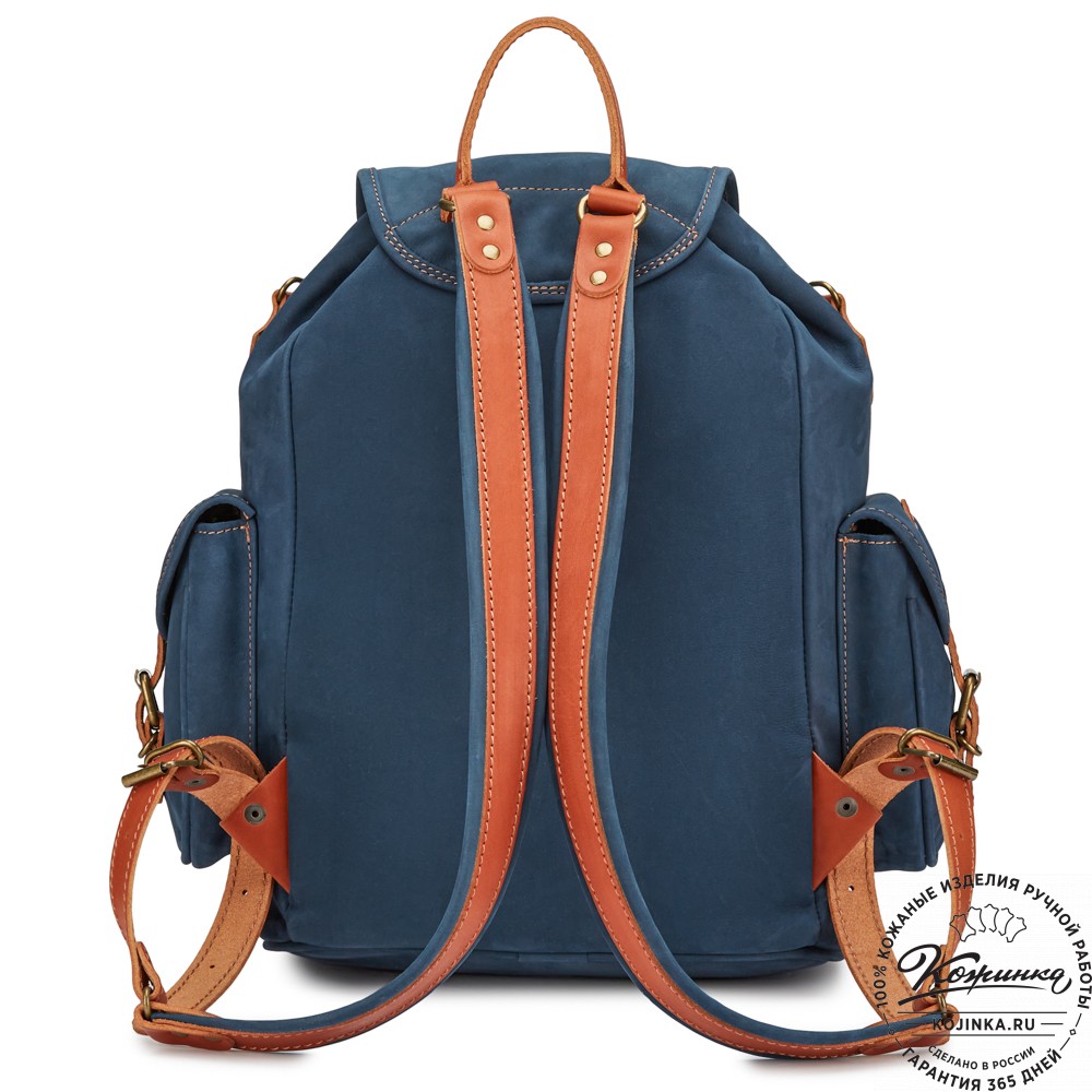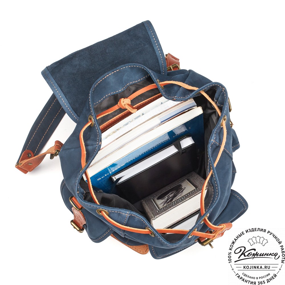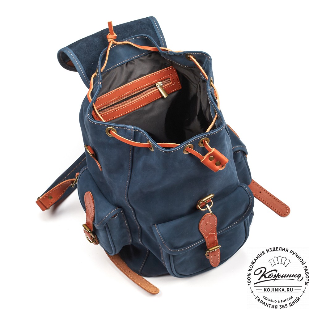 Внутри на задней стенке - карман на молнии для ценных вещей. Лямки у рюкзака мягкие, с двух сторон кожаные, регулируются по длине.