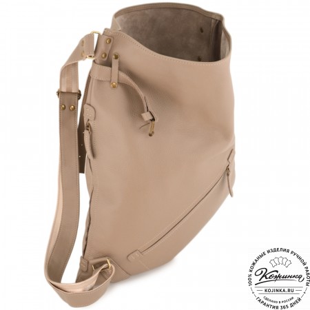 Кожаный рюкзак "Селена" (какао нубук) - модный многофункциональный рюкзак-мешок. Несомненно стильный, современный и такой красивый!