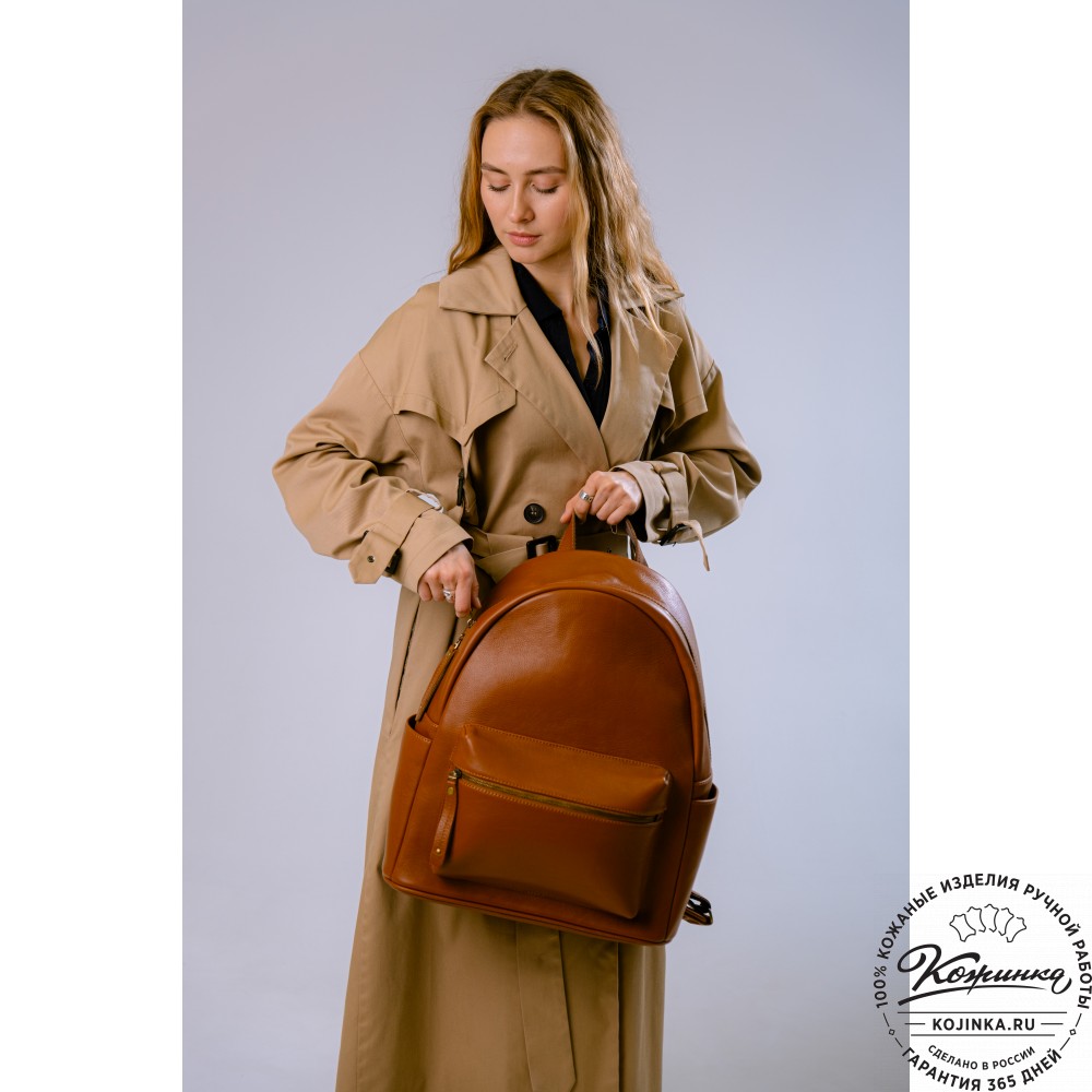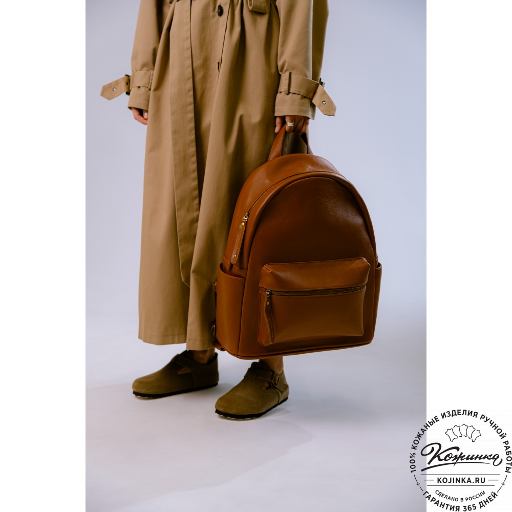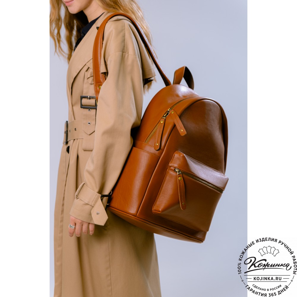 Кожаный рюкзак "Старк" (рыжий) – стильный и универсальный, подходящий для различных ситуаций.