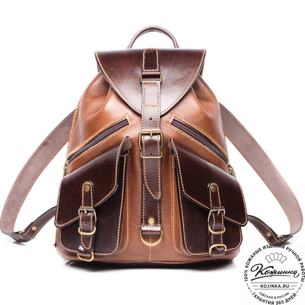 Кожаный рюкзак "Пилот" (коричневый) - универсальный небольшой кожаный рюкзак на каждый день!