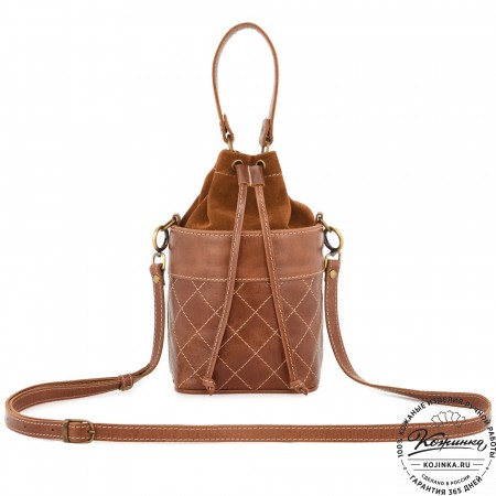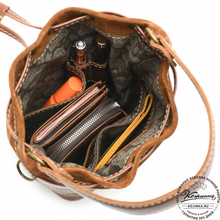 Женская сумка из кожи и замши  "Мишель мини" (коричневая)
