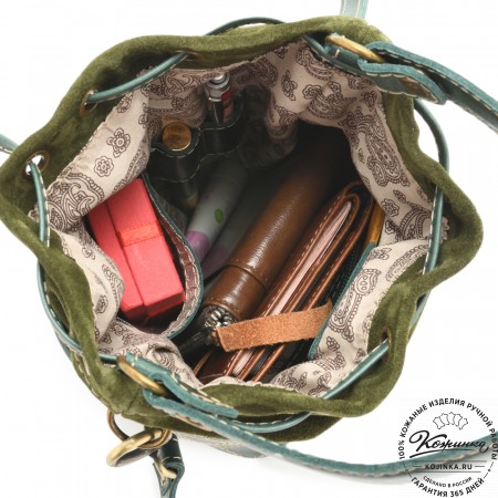 Женская сумка из кожи и замши  "Мишель" (хаки)